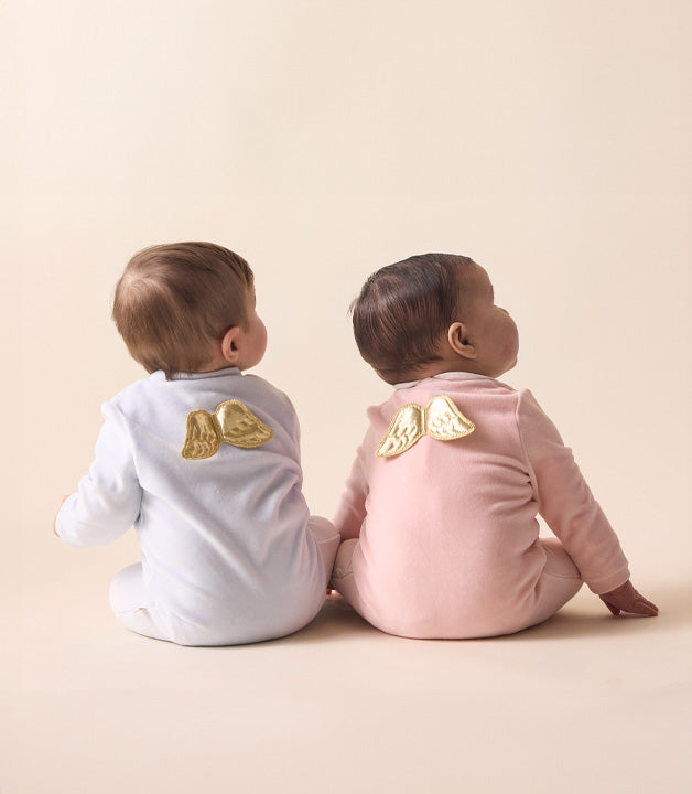 Set of 2 - Pointelle Angel Wing™ Sleepsuits - White & Pink