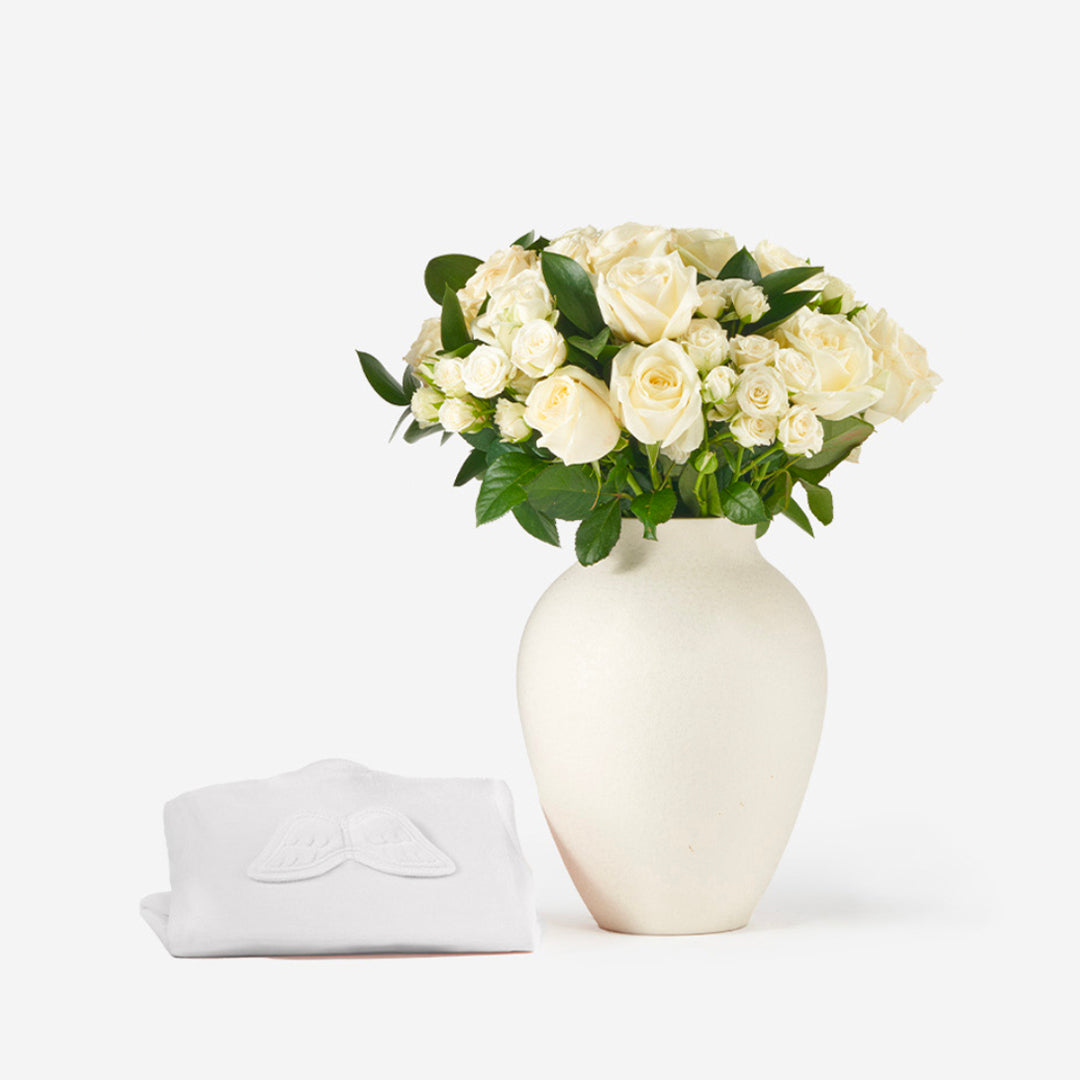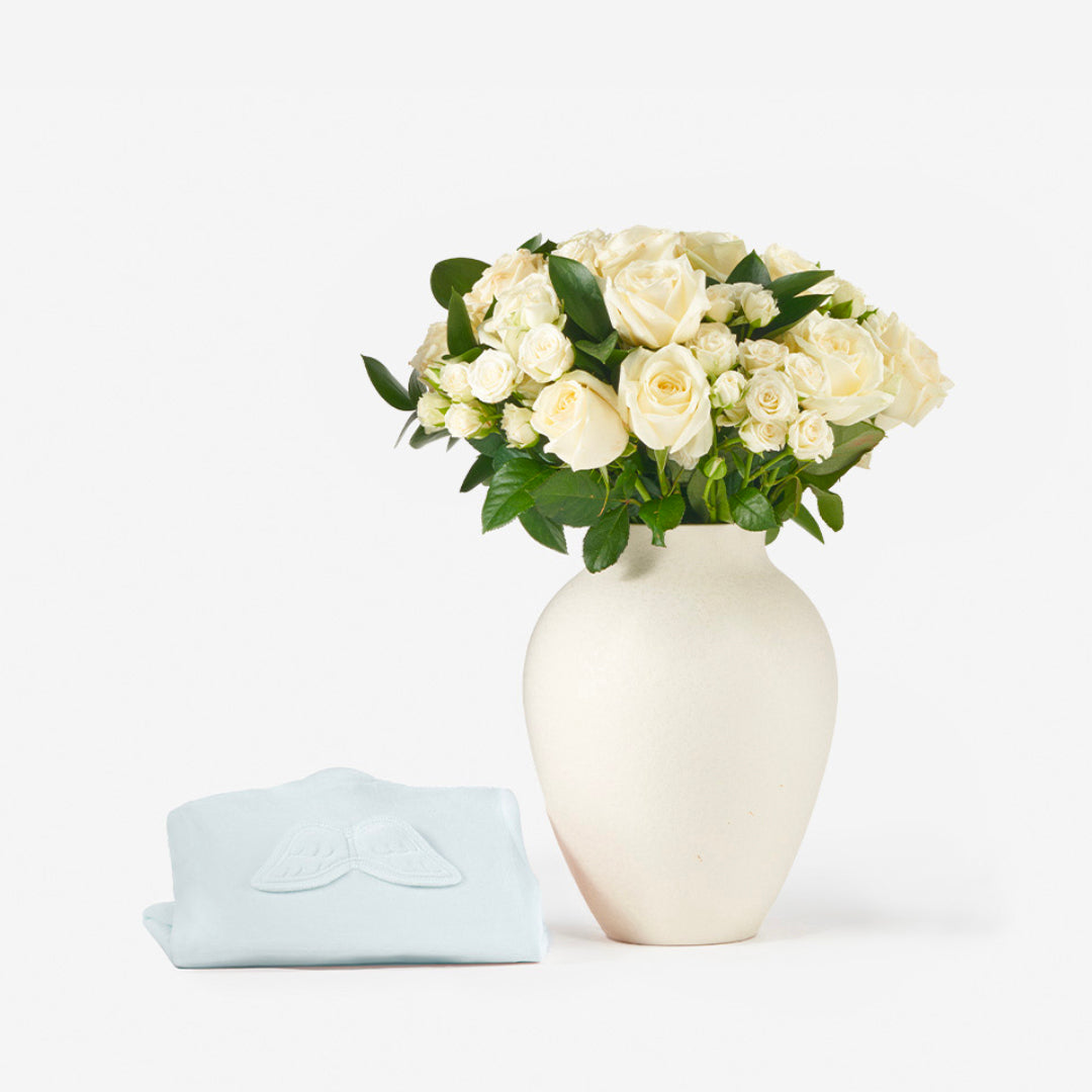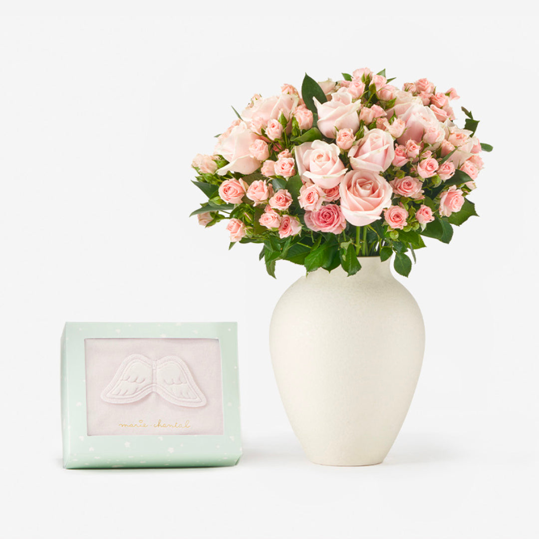 Working with the FLOWERBX team, Marie-Chantal has curated an edit of her favourite flowers to create the most beautiful gift sets. Featuring our Angel Wing™ velour sleepsuit, the perfect gift for new parents.