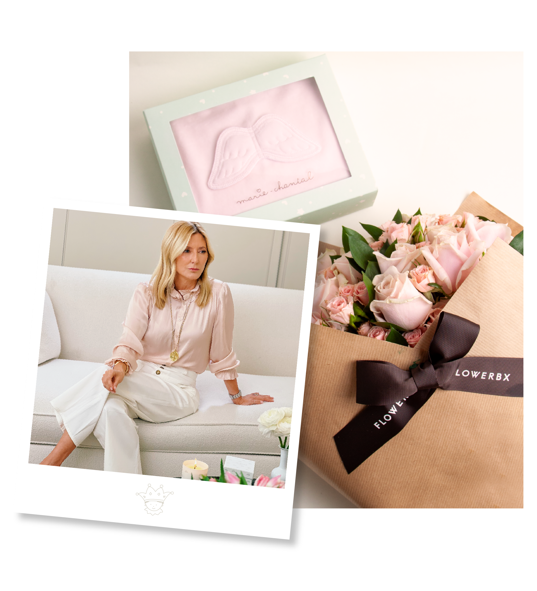 Working with the FLOWERBX team, Marie-Chantal has curated an edit of her favourite flowers to create the most beautiful gift sets. Featuring our Angel Wing™ velour sleepsuit, the perfect gift for new parents.