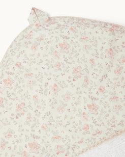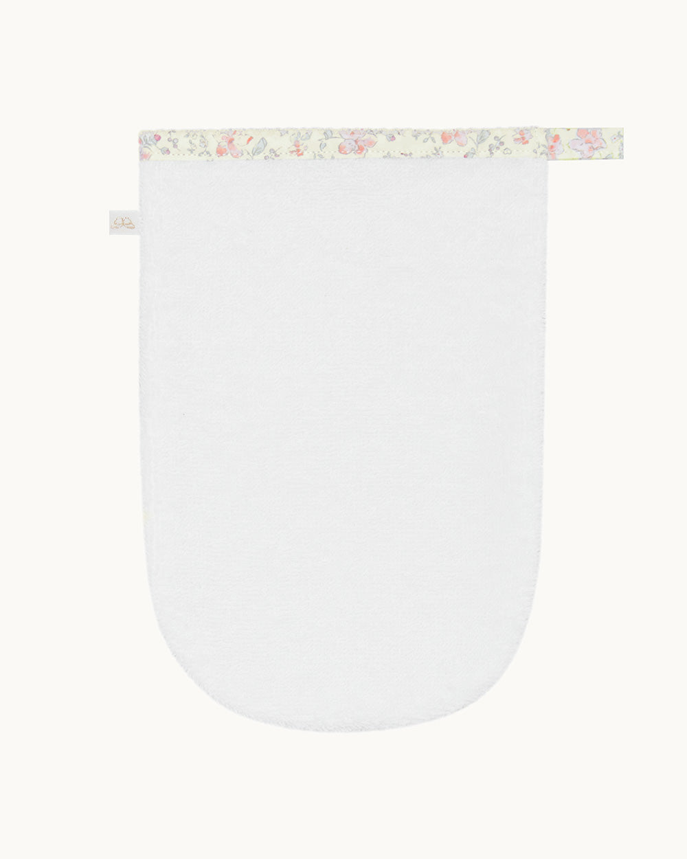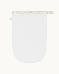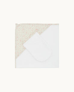 A matching towel and mitten set in the pink Athena floral print. Made from soft cotton, the set feels gentle against the skin, making bath time a comfortable, practical ritual.