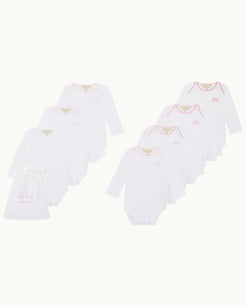 Wrap little ones in comfort and luxury every day of the week, with this set of soft cotton onesies and socks — now updated for cooler months with long sleeve onesies.