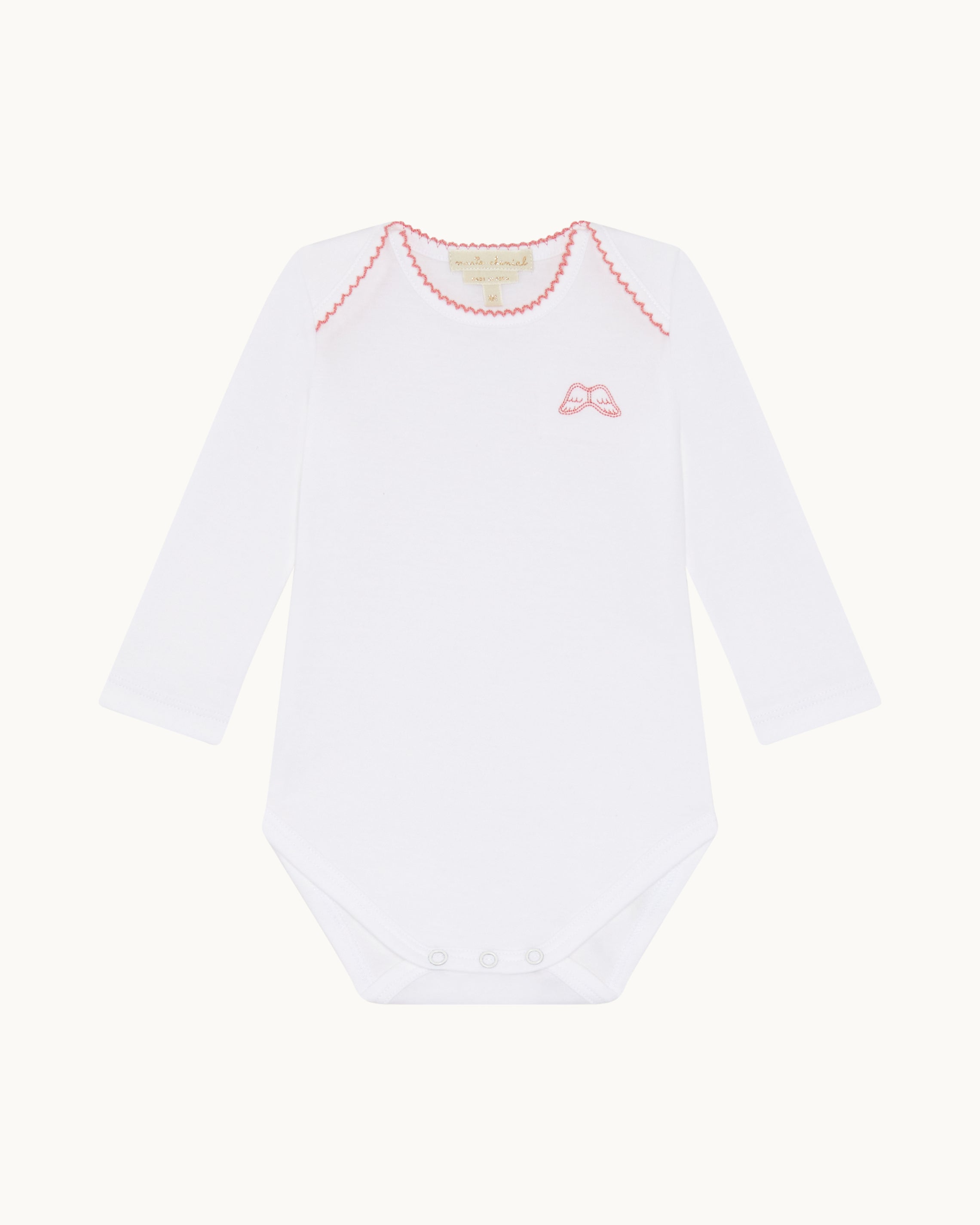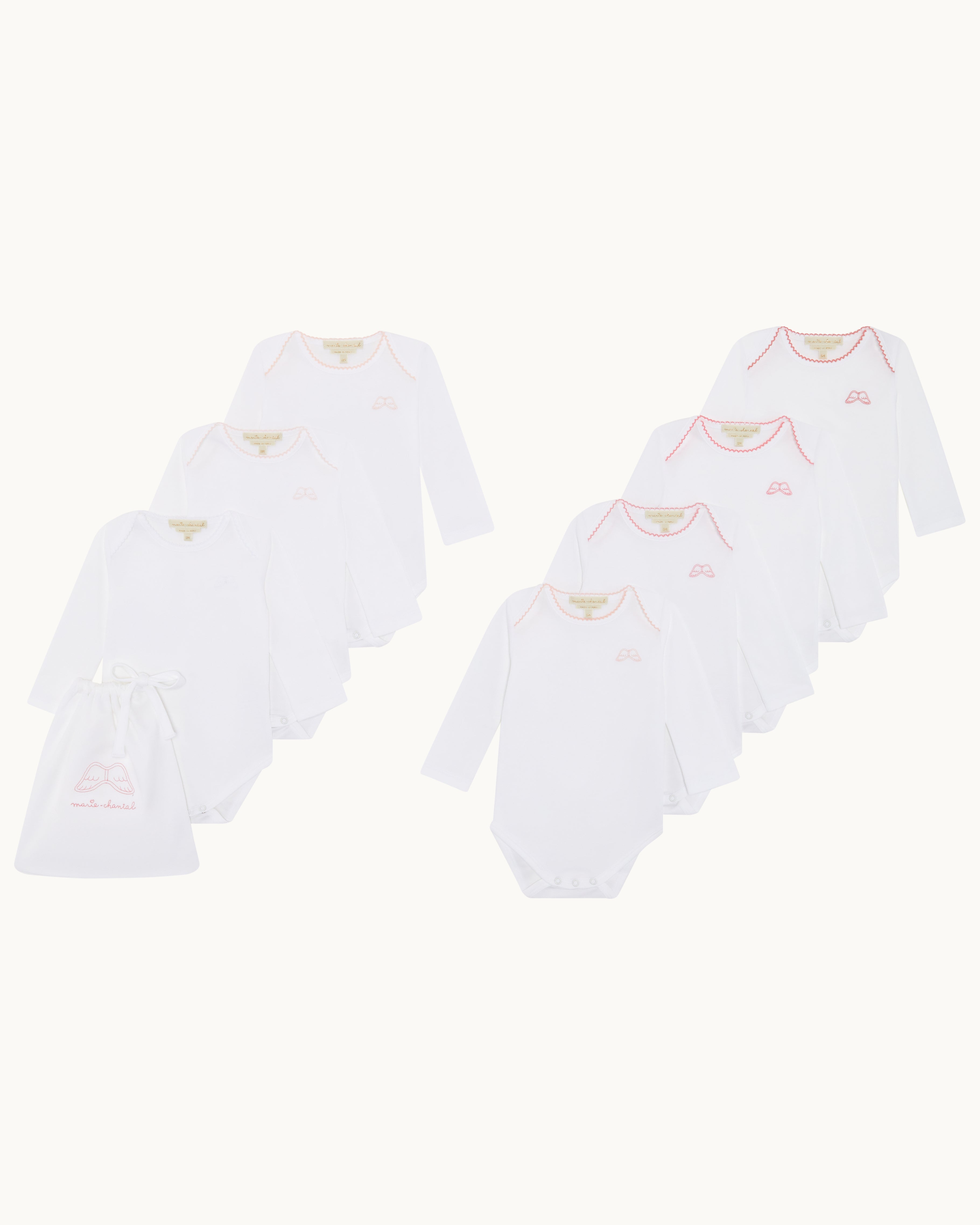 - Set of 7 Angel Wing Picot Long Sleeve Onesies - Pink Fade