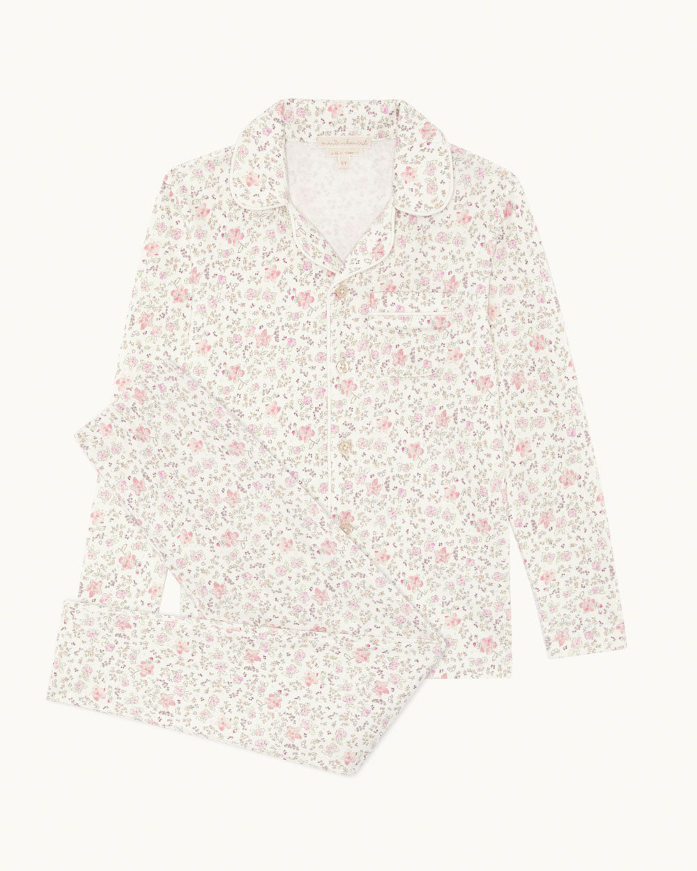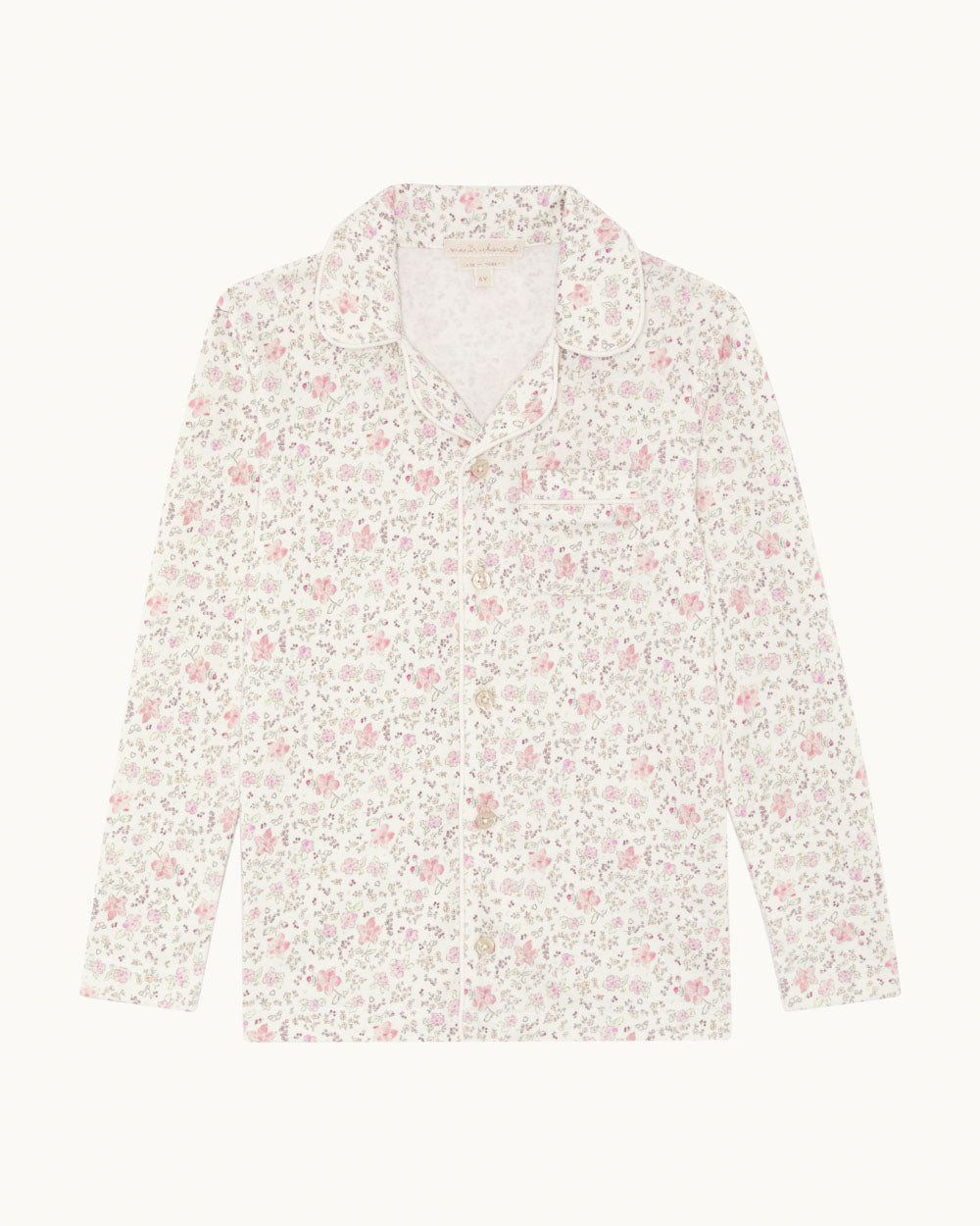 Made from soft organic cotton, this pyjama features the season’s pink Athena floral print with a Charles-style collar finished with MC buttons. Designed with a relaxed fit for comfortable wear.