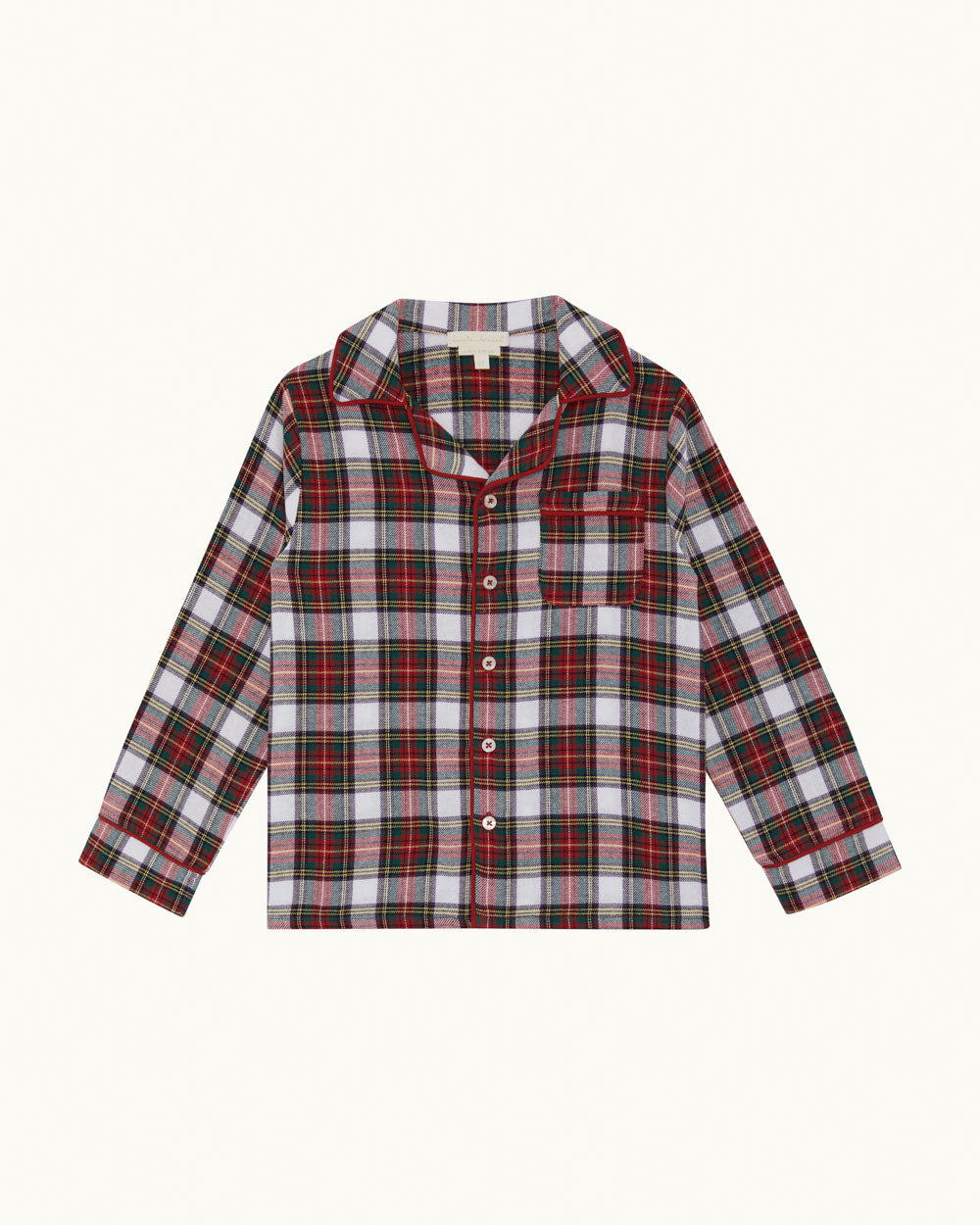 Wrap your little one in classic holiday charm with our festive tartan child's pyjama set. Crafted from soft British brushed cotton twill, this style is comfortable against delicate skin, and is perfect for cosy winter nights and slow mornings at home.