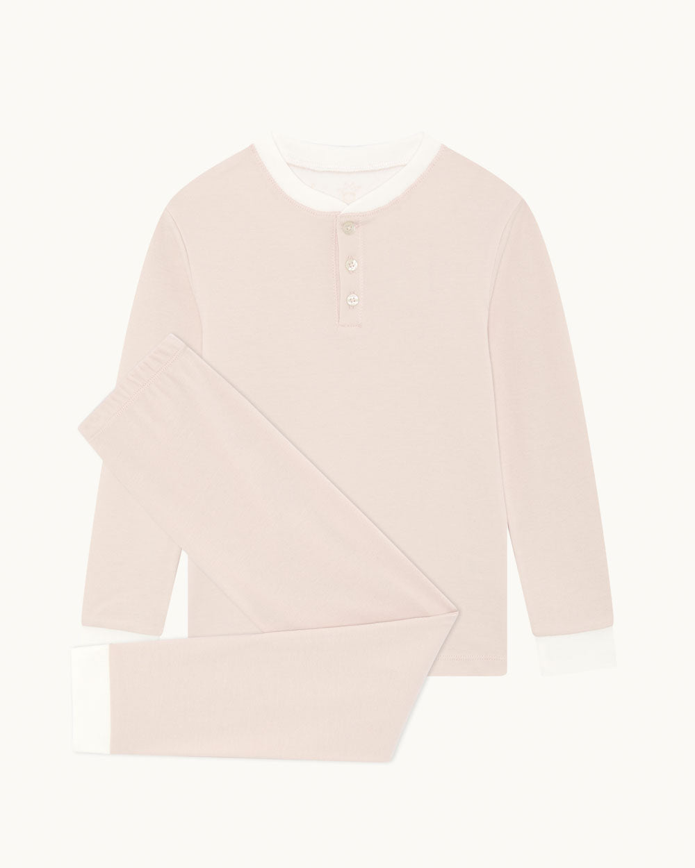 The Derek Stripe Pyjama 2 Piece Set is made from soft organic cotton and comes as a two-pack, featuring one striped pyjama and one in a solid colour. Designed in our classic MC Pink and MC Blue tones, each set is finished with MC buttons at the collar for easy adjustment.