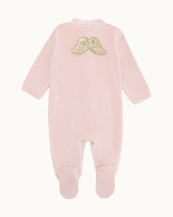 - Angel Wing Velour Sleepsuit - Dusty Pink & Gold