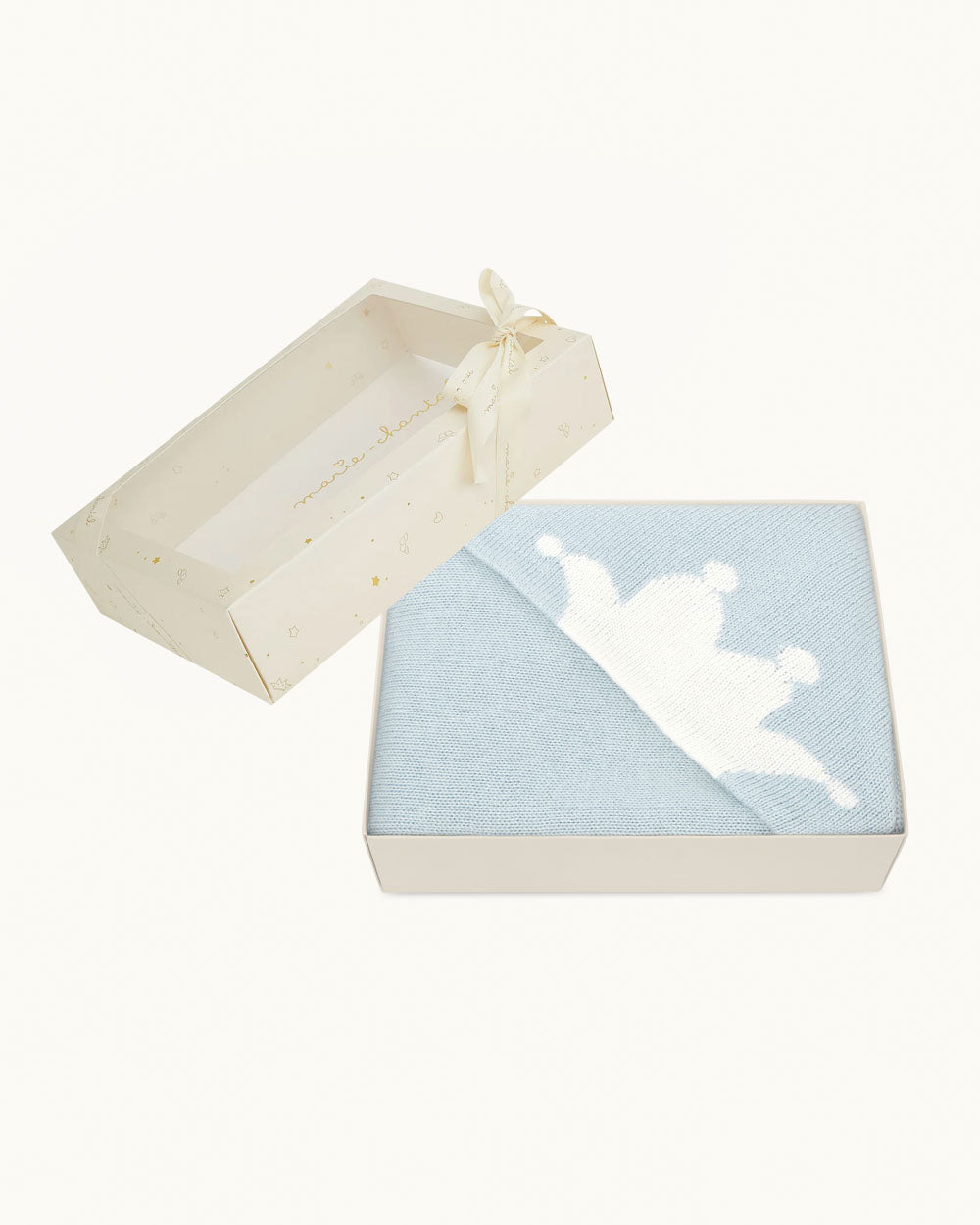 Marie-Chantal’s hooded Tino Crown blanket in blue features our signature motif and is made from a cotton and cashmere blend, making it gentle to the most delicate skin.